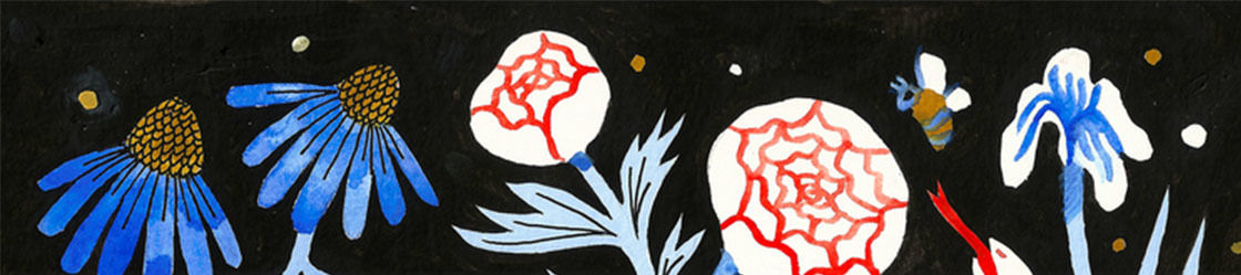 The work I make seeks to reunite the human spirit with what we innately know - the experience of presence and joy as understood through the natural world. I have many personal points of connection to the web of life which I re-envision and recreate in my pieces — celestial bodies, the human figure, landscapes, flora, and fauna drawn from my own memories and experiences. My illustrations serve as reminders of the validity of non-human life, and does the work of putting a spotlight on the relationships we have with the natural world. I balance human bodies against constellations, violets against moths, mushrooms against the night sky. Balance and symmetry in the image translates to finding balance as a species with the myriad of other life forms we share the earth with.