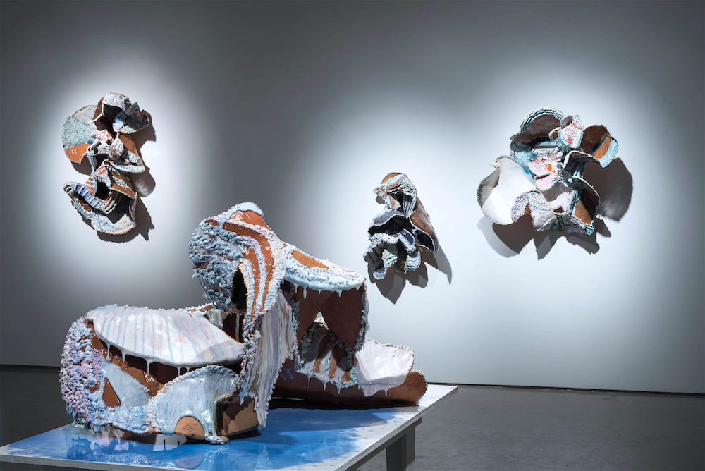 I build bridges. I build bridges between the masculine and feminine, between East and West, between decorative and functional, and between the eternal and the ephemeral. The bridges I build are suspension bridges. They suspend (often in the air) decay, ambiguity, and sensuality—the taut, fibrous stings of emotional labor that welcome the viewer across the chasm from one side to the other. Through colors and glaze, I explore luxury and decadence with surfaces that crystallize, facet, fragment, stylize, sharpen, distort, blur and cause noise.